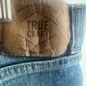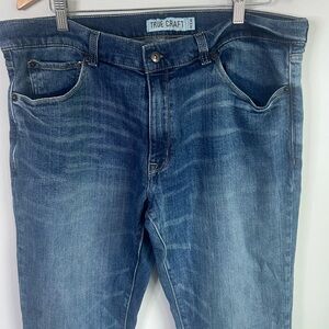 True Craft Light Wash Tapered Jeans | 36x34 | Distressed Hem