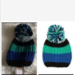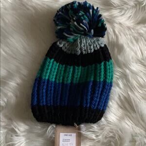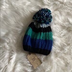 Thick multicolored stripes accent this hat from TRUE CRAFT, featuring a large top pom for effortless style.