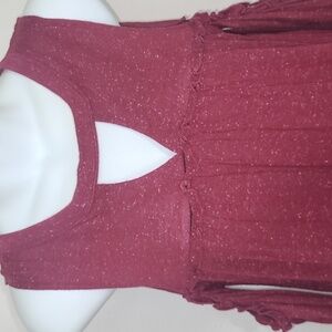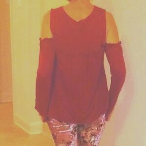 True Craft NWT Cold Shoulder Bell Sleeve Tunic Top Burgundy Red Date Night Sexy