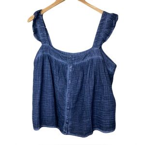 Stylish blue sleeveless top with button-up front. Perfect for casual outings.