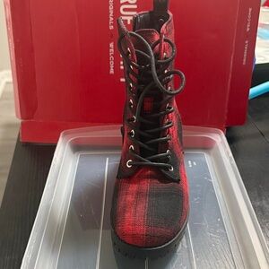 True Craft Red and Black Plaid Combat Boots