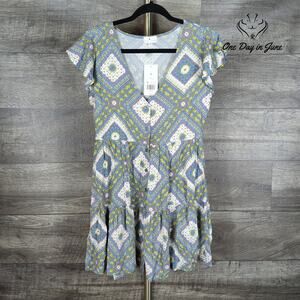 Tags: #TrueCraftDress #WomensBlueRayonDress #SummerButtonFrontDress