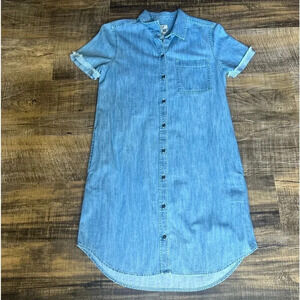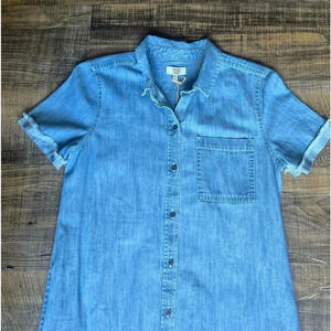 True Craft Short Sleve Button Down Jean Shirt Dress Size Small