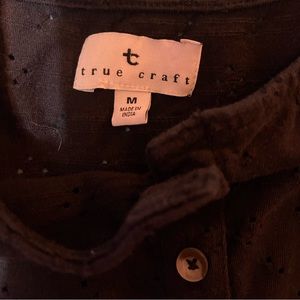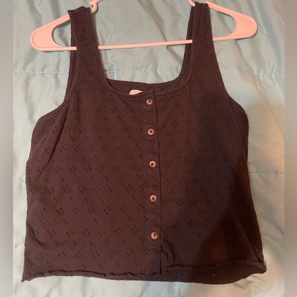 This is super cute, it’s a size medium. It has little eyelets on it and it’s very cute!! Worn once