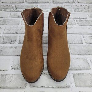Great pre owned condition, Terri booties by True Craft with brown cow print suede heel, zip back. Women's size 8.5