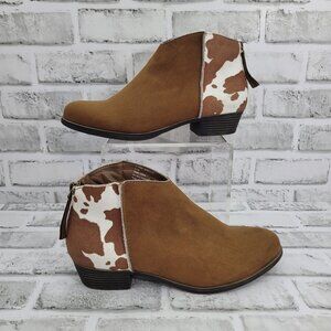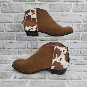 True Craft Terri Brown Cow Print Heel Booties Women's Size 8.5