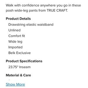 True Craft Twill Cropped Wide Legged Pants Cyprus size large