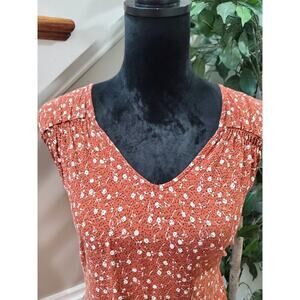 True Craft Women Orange Polka Dot 100% Rayon V Neck Sleeveless Top Shirt Size 3X