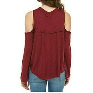 True Craft Womens Juniors Top Size XS Ruffle Cold Shoulder Knit Red Crimson NEW
