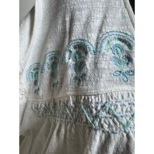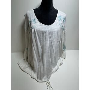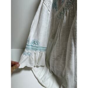 True Craft Women’s Peasant 2X Cottage Core Blouse 3/4” Bell Sleeve White Teal
