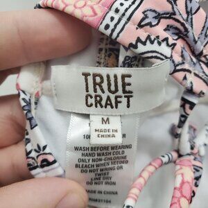 True Craft Women's Pink Multi Boho Moroccan Plunge Wide Strap Lace Bikini Top M