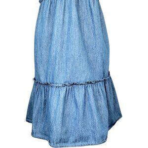 True Craft Womens Sleeveless Denim Tiered Dress Size L V-Neck & Back Tie Closure