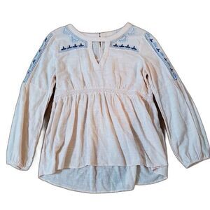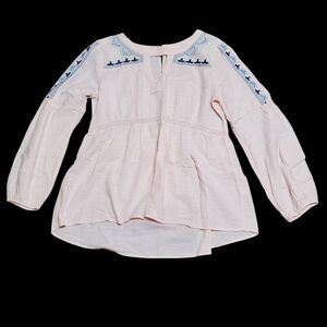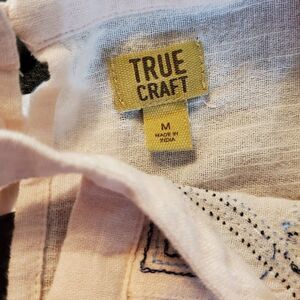 True Craft Womens Sz Medium Nashville Vibes Embroidered Lyric Pink Blouse Blue Embroidery