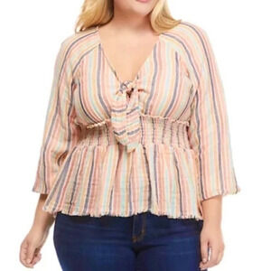 True Craft XL Smocked Tie Front Peasant Top Beachy