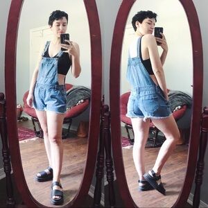 True Craft • denim overall shorts shortalls cut offs raw frayed hem distressed
