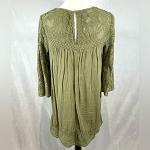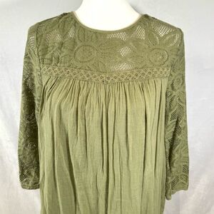 True Craft olive green 100% cotton peasant dress with lace size XS