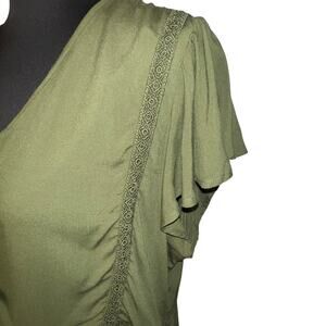True Craft, women’s size XL, scroll embroidered, baby doll tassel plated button yolk flutter caplet sleeve Y2K stretch tunic top. NEW