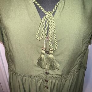 True Craft, women XL, scroll embroidered, baby doll tassel pleated tunic NEW