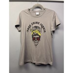 True Crime Junkie Shirt Womens Medium Tan Graphic Port & CO