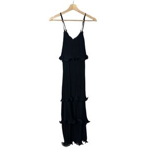 True Decadence Black Pleated Layered Ruffle Midi Dress S