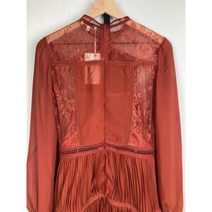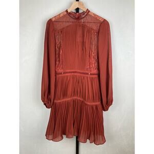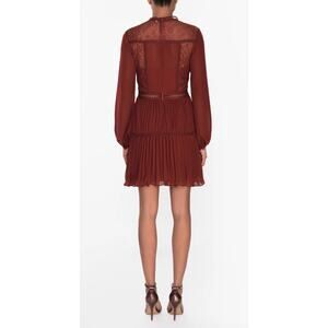 True Decadence Lena Burgundy Lace Pleated Mini Dress Sz US 8/UK 12 NWT Sheer