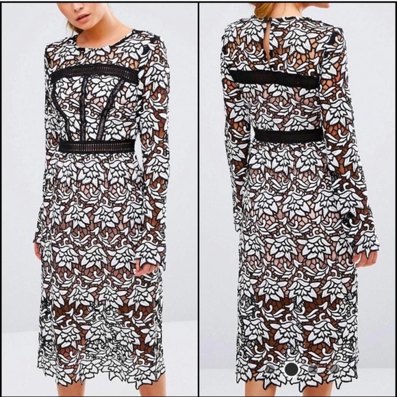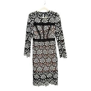 True Decadence Long Sleeve Black and White Floral Appliqué Medi Dress Sz 10