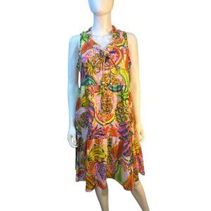 True Destinations Colorful Sleeveless Tropical Fruit Print Dress Size M EUC