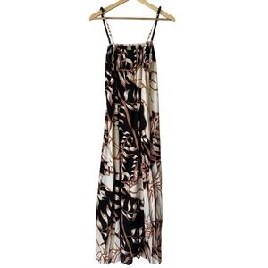 True Destinations Sleeveless Black and Brown Maxi Sun Dress, Medium