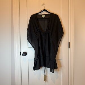 True Destinations Women’s Black Sheer Bathing Suit Cover Up Size M Gold Tassel