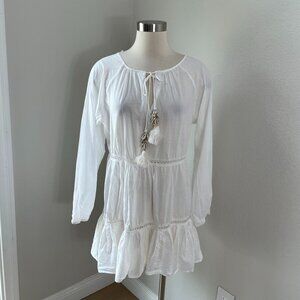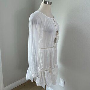 True Destinations Womens Medium White Beach Boho Tunic Dress Seashell Tassels