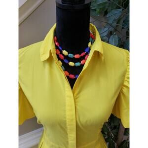 True Destiny A Line Shirt Dress Women's Large Yellow Puff Sleeve Button Down