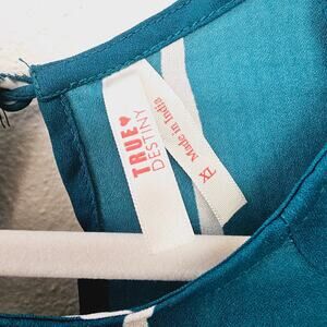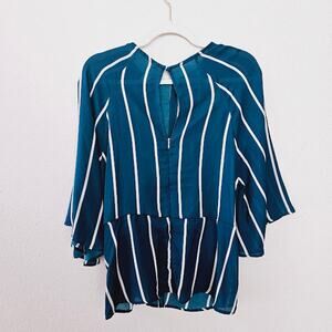 True Destiny Green & White Striped Short Sleeve Blouse- Women's XL