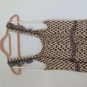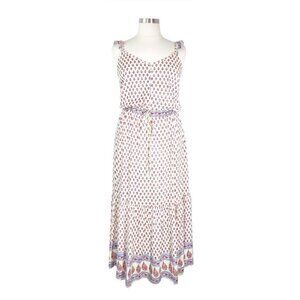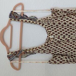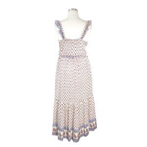 True Destiny Printed Maxi Dress Cream Red Sz XXL Ruffle Straps V Line Button