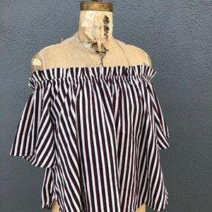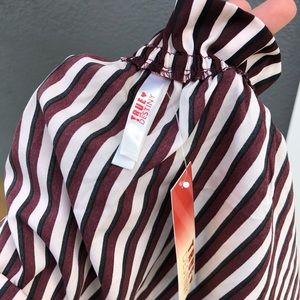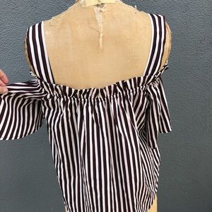 You can tuck in the shoulder straps to have it as an off the shoulder shirt. Pictured in 2nd to last photo. Never worn with tags