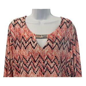 True Envy Women's Geo Print Dress Size 20W Multicolor Metal Collar Accent Long Sleeve