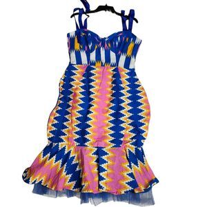 True Fond Akai Kente Dress African Mermaid Gown Traditional Wedding Gown Sz Lg