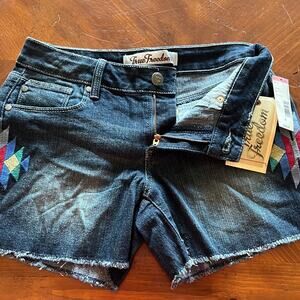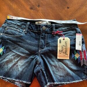 True Freedom Size 5 Blue Denim Embroidered Jean Shorts NWT Southwestern