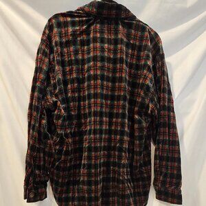 The True Grit Black & Red Plaid Button-up Soft Shirt in size Small is a stylish and versatile addition to any man's wardrobe. With its classic collared neckline and wooden buttons, this shirt exudes a rugged yet put-together vibe. The black and red plaid design adds a pop of color and flair to the overall look, making it suitable for casual occasions or dressed-up events. Made with quality materials, this shirt is sure to be a favorite go-to piece for any man looking for a comfortable and fashionable option.