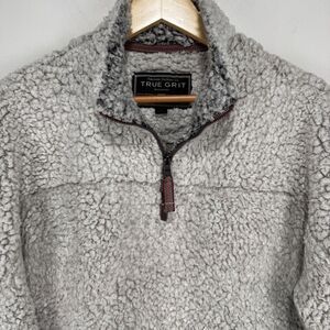 True Grit Frosty Tipped Pile Quarter Zip Pullover Sweater Men Small Gray Warm