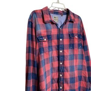 True Grit Red and Blue Plaid Button Front Long Sleeve Shirt XL (2626)