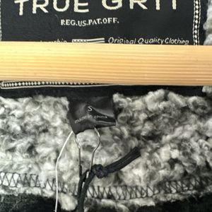 True Grit Sherpa Fleece Mens Pullover Sweater Small Gray Quarter Zip Warm
