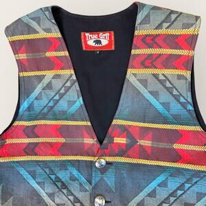 True Grit Mens Vintage Southwest Tribal Aztec Tapestry Vest Tuxedo