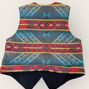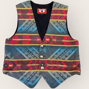 True Grit Vintage Southwest Aztec Tapestry Vest Tuxedo Woven Men Size L / 4 USA