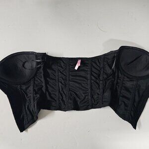 True Lace Corset Bra Crop Top Push Up Goth Vamp Grunge Punk Black Strapless XS