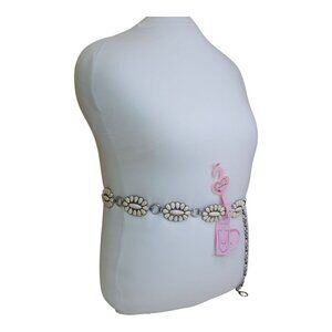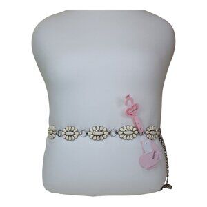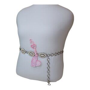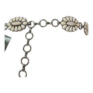 Elevate your outfit with this stylish white stone and silver chain belt. Its unique design stands out, adding a touch of elegance to any ensemble.