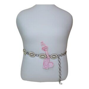 True Love Concho Belt Stone & Silver Chain Large XLarge 44.5" Long w/Chain