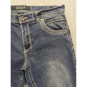 True Luck Jeans Mens 34x30 Blue Straight Leg Denim Contrast Stitch Embroidered