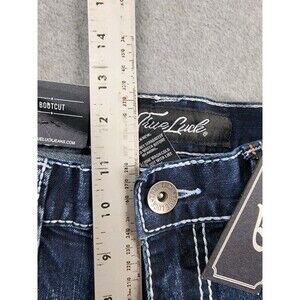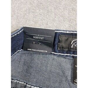 True Luck Jeans Mens 34x30 Boot Dark Blue Thick Stitch Mid Stretch Western NEW
