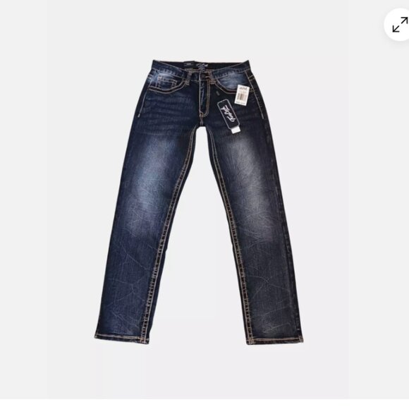 True Luck Men`s Straight Jeans Size 30x32 Embroidered Medium Wash Denim Blue