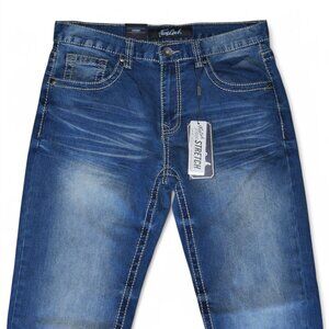 True Luck Straight Leg Jeans Dark Wash Denim Thick Stitch Men's Size 34x32 BKE